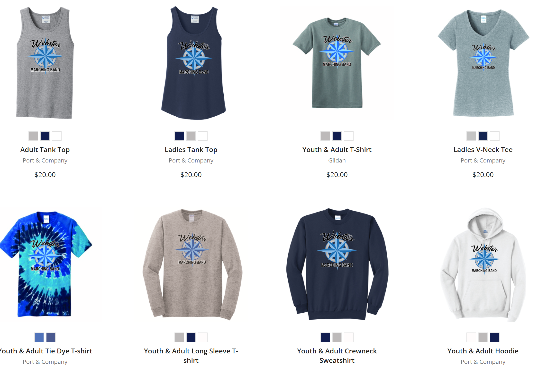 Band Apparel - STORE OPEN thru 7/9/25 Sunday, June 29, 2025 7:00 PM Wednesday, July 9, 2025 8:00 PM Google Calendar ICS Band Swag and Fundraiser!Show some support for all out amazing Webster kiddos that participate in the band as musicians and performers! The apparel and swag store closes 07/09/2025. The next store will not open until November!LINK HERE ➡️ WMB APPAREL SHOP